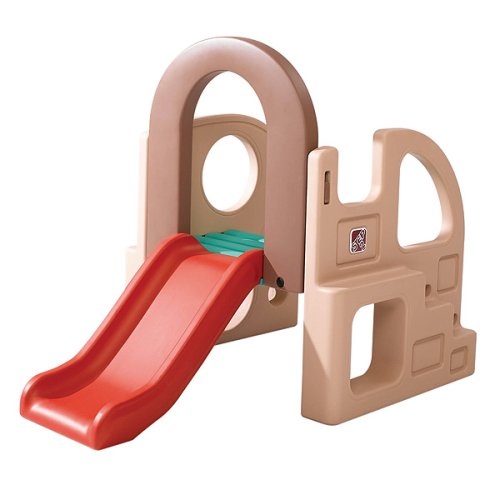 18 months & up. All-in-one toddler activity gym that offers climbing, crawling, hiding, and sliding. Features a crawl-thru tunnel, archway and unique exterior step-up walls. Appropriately sized for toddlers. Minimal adult snap-together assembly required. 32"H x 31"W x 15 1/2"D.