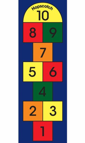 Hopscotch II play carpet - Great Fun At Home, School, Grandma's House, The Beach, The Park And Parties. THIS OLD FAVORITE CAN NOW BE PLAYED ANYTIME, ANYWHERE, INDOORS AND OUT. TWO BEAN BAGS ARE INCLUDED FOR TOSSING. This Learning Carpets® carpet is a popular kid carpet and part of our Play Carpets series of rugs for kids. The Anti-Microbial treatment is a durable locked-in chemistry that is incorporated into the backing composite of Learning Carpets® rugs to minimize product deterioration and odors caused by microbial activity. This floor-covering enhancement means that any spills penetrating below the face of the carpet will come in contact with the antimicrobial treatment, minimizing the opportunity for product-deteriorating microbial activity in the backing or beneath the carpet. This chemistry has been tested for effectiveness and safety and is EPA Approved. In addition, this antimicrobial protection remains active for the life of the carpet under normal use conditions for commercial carpet as long as routinely accepted maintenance practices are followed. Shipping & Returns - To reduce shipping costs this item ships direct from the manufacturer in 1-2 business days. Please allow 10-14 days for shipping time. Learning Carpets® charges a 25% restocking fee on returns. Items must be unused and properly packaged to avoid damage during return shipment. Manufacturer Warranty: Lifetime Abrasive Wear - Lifetime Anti-Microbial Protection - Lifetime Anti-Static Fiber.