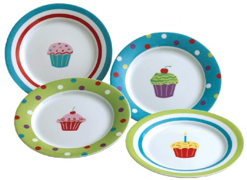 Cheap Tag Party Appetizer Plates, Cupcake Design, Assorted Colors, Set of 4 Discount Review Shop