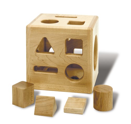 Giant, solid hardwood sorting cube with solid hardwood shapes to sort. Four different sorting combinations from simple to complex. Large openings on each side for easy retrieval of shapes. Solid hardwood construction makes this sorting cube virtually indestructible.