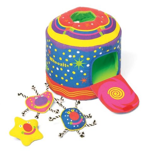 Get your little tike to understand cause-effect with the Silly Sounds Whoozit form Manhattan Toy. Plop the silly characters inside of the Whoozit and listen to them make a different noise. Then, sit back and watch as the baby laughs and laughs. The classic fill and pour play encourages development of motor skills. Hours of fun can be had with this soft toy from Manhattan Toy.